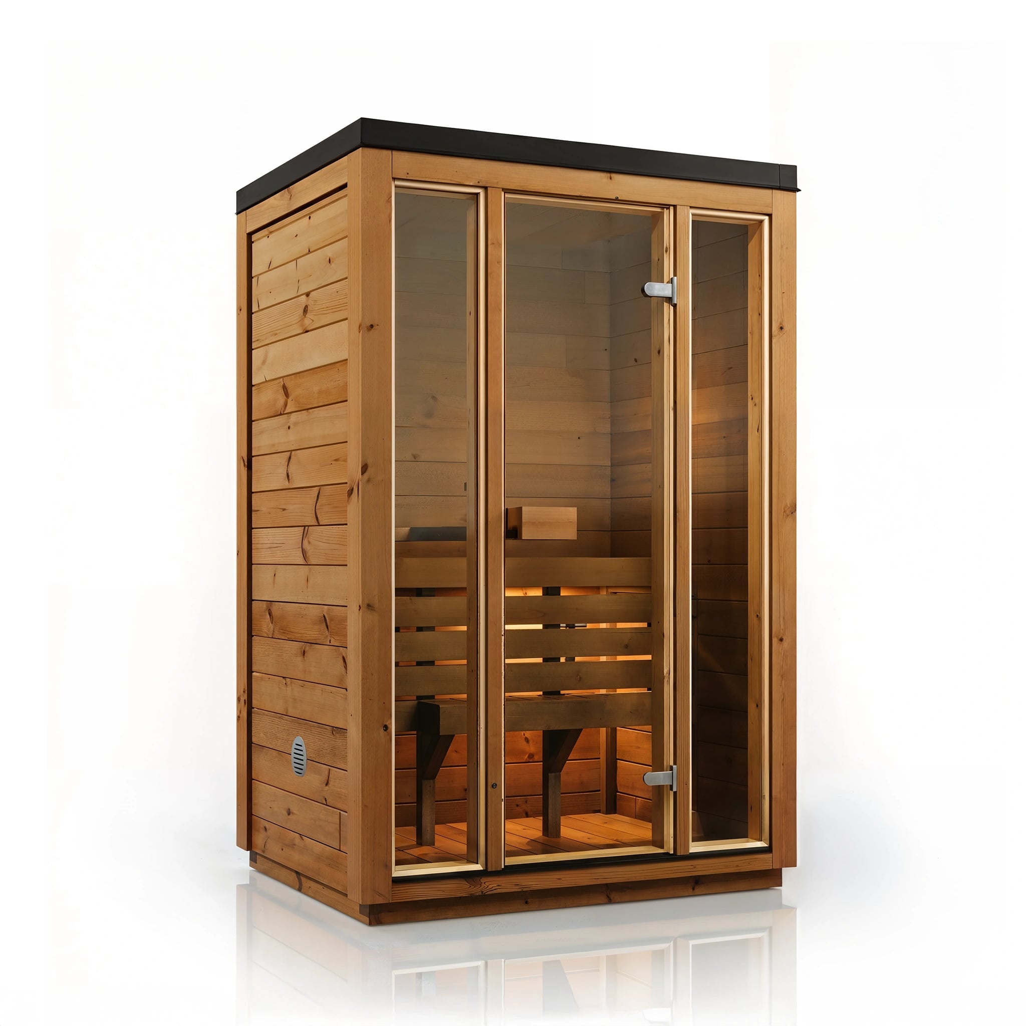 Crafted in Europe using high-quality spruce or thermo-wood options, Halo balances warmth, durability, and modern simplicity. A full-glass front invites natural light, while the insulated cube structure retains heat efficiently for consistent, comfortable sessions.