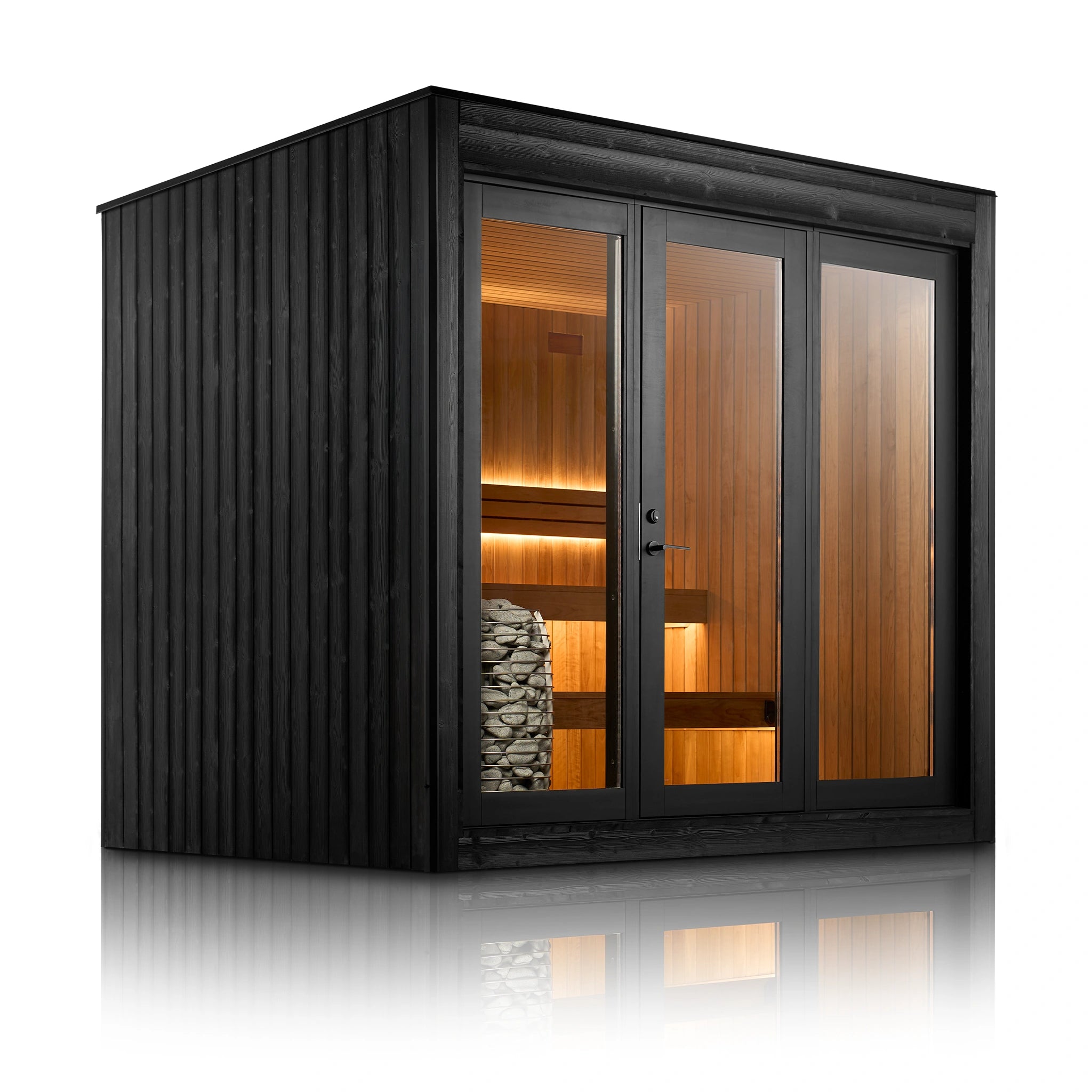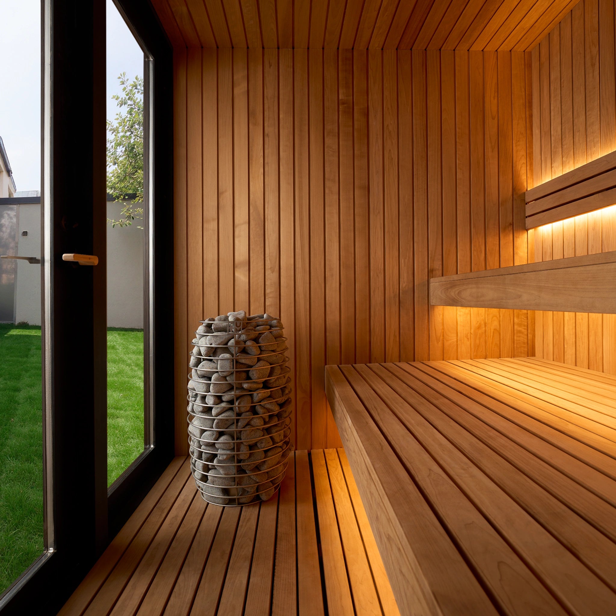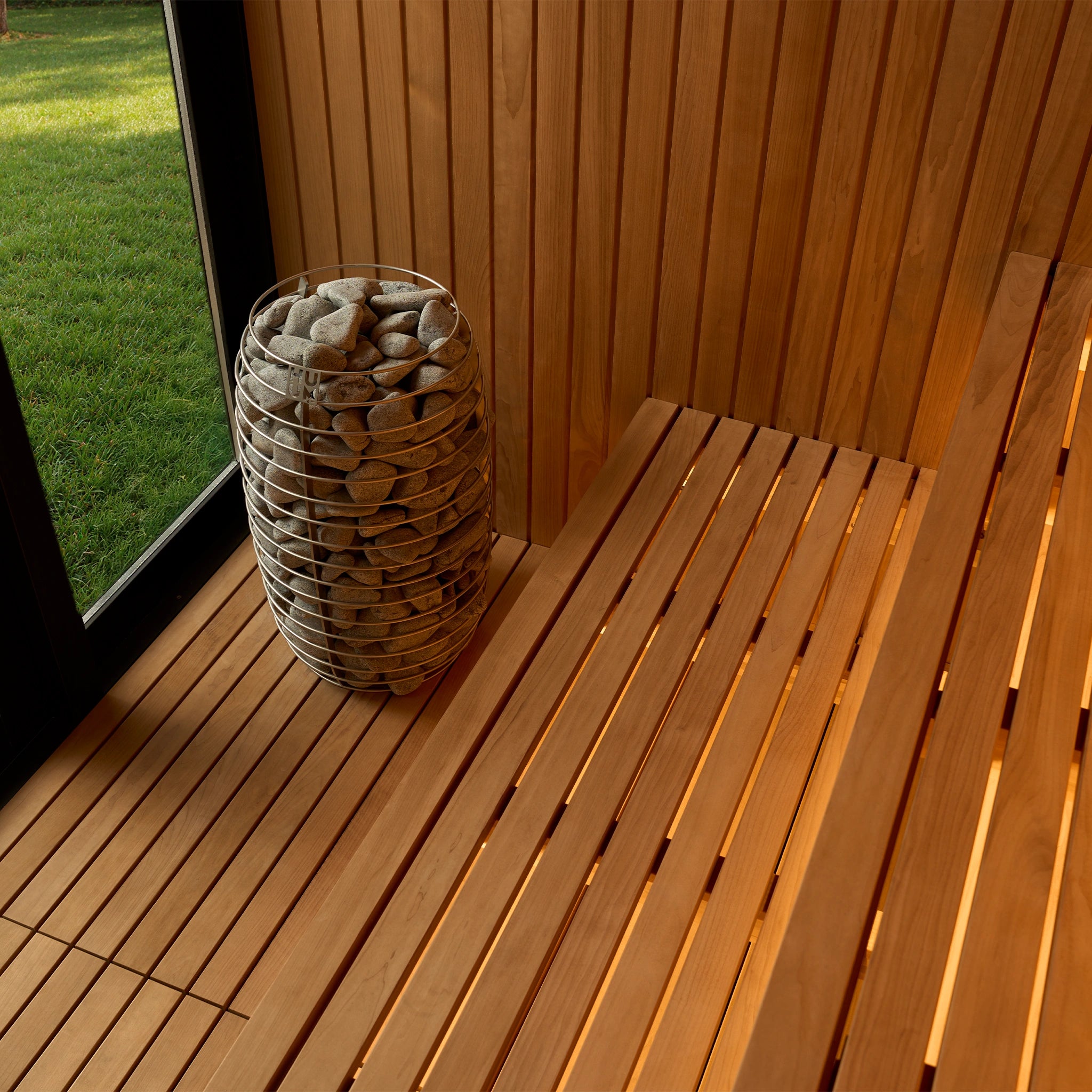 Libera est né pour vous donner la possibilité de concevoir l'espace selon vos envies. Il est possible de choisir entre une façade en bois ou en verre et, selon vos préférences, vous pouvez l'avoir avec ou sans dossier.Le nom de Libera reflète sa nature : un lieu qui élève votre esprit. Chaque détail du sauna est conçu pour créer une sensation de bien-être et de légèreté.
