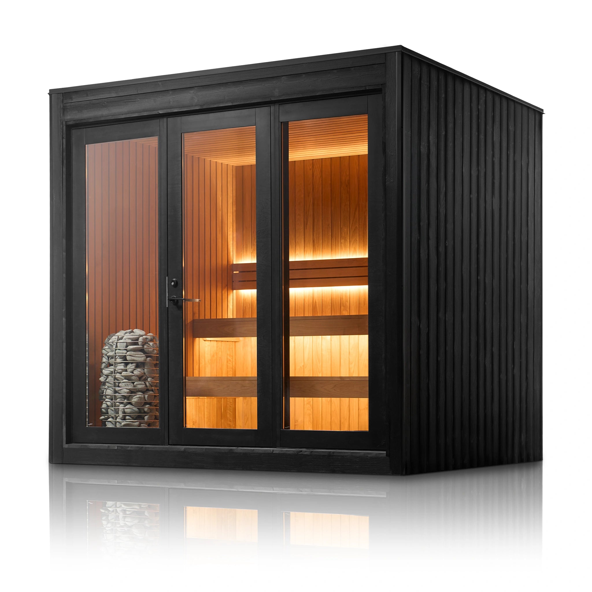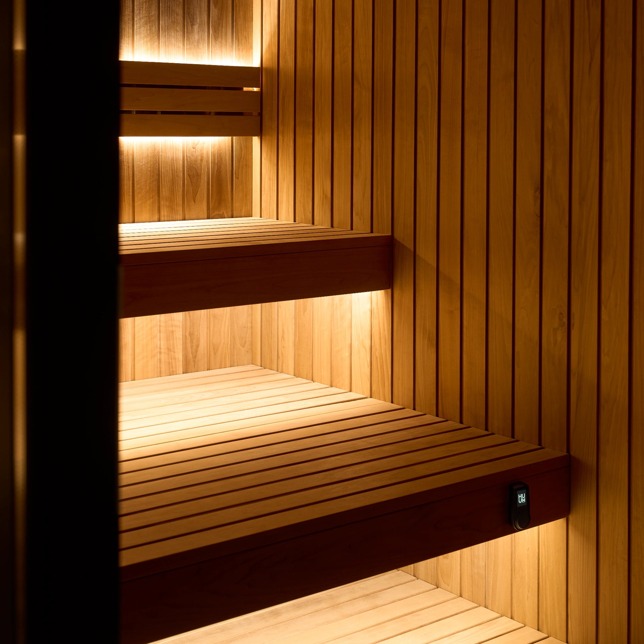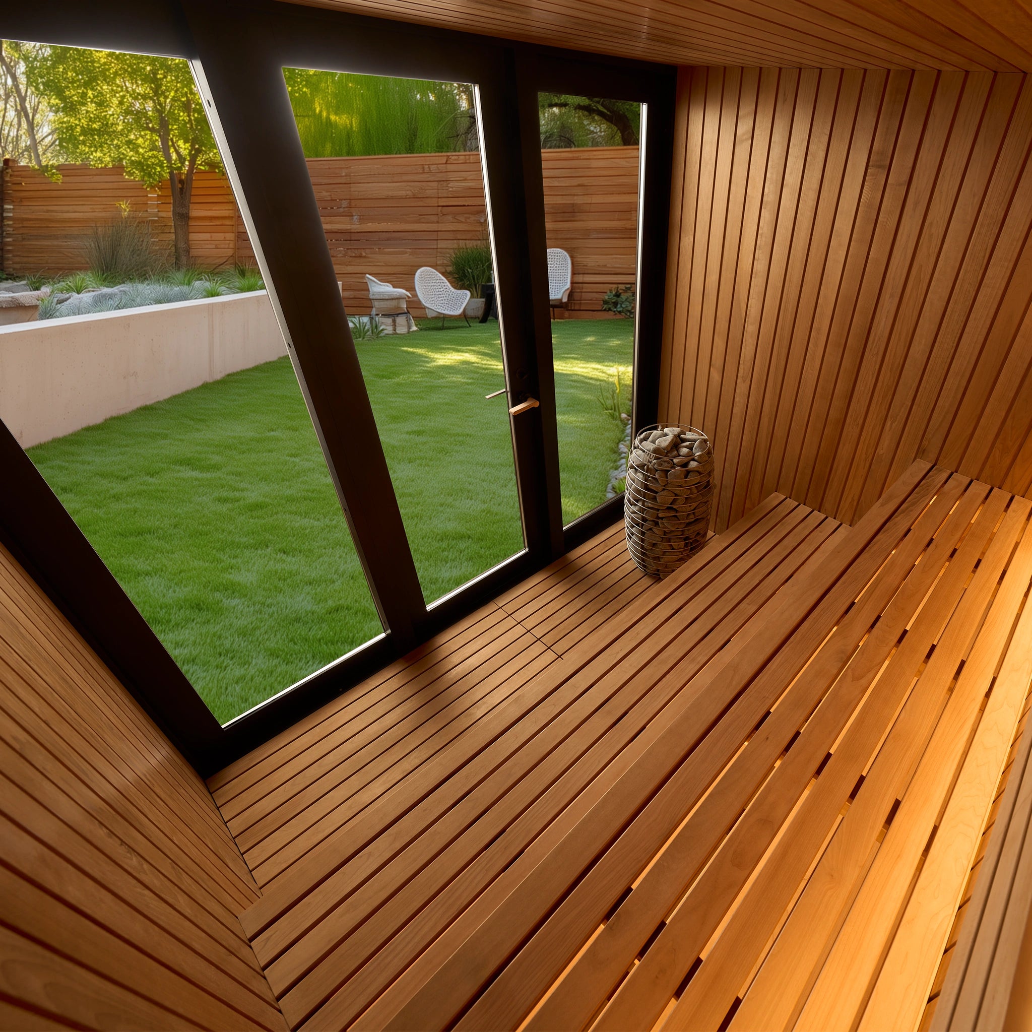 Libera est né pour vous donner la possibilité de concevoir l'espace selon vos envies. Il est possible de choisir entre une façade en bois ou en verre et, selon vos préférences, vous pouvez l'avoir avec ou sans dossier.Le nom de Libera reflète sa nature : un lieu qui élève votre esprit. Chaque détail du sauna est conçu pour créer une sensation de bien-être et de légèreté.